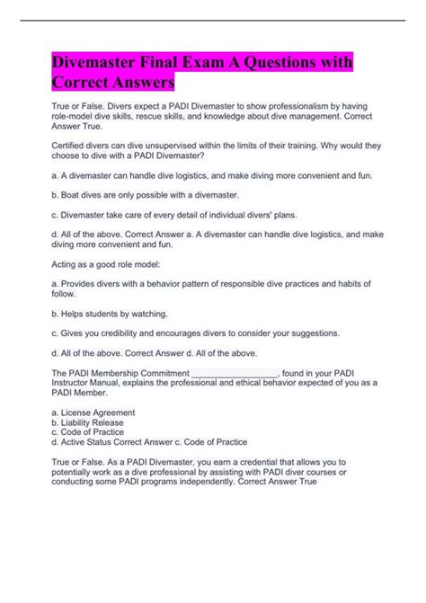 Reading Online padi divemaster final exam questions Library Binding Google eBookstore